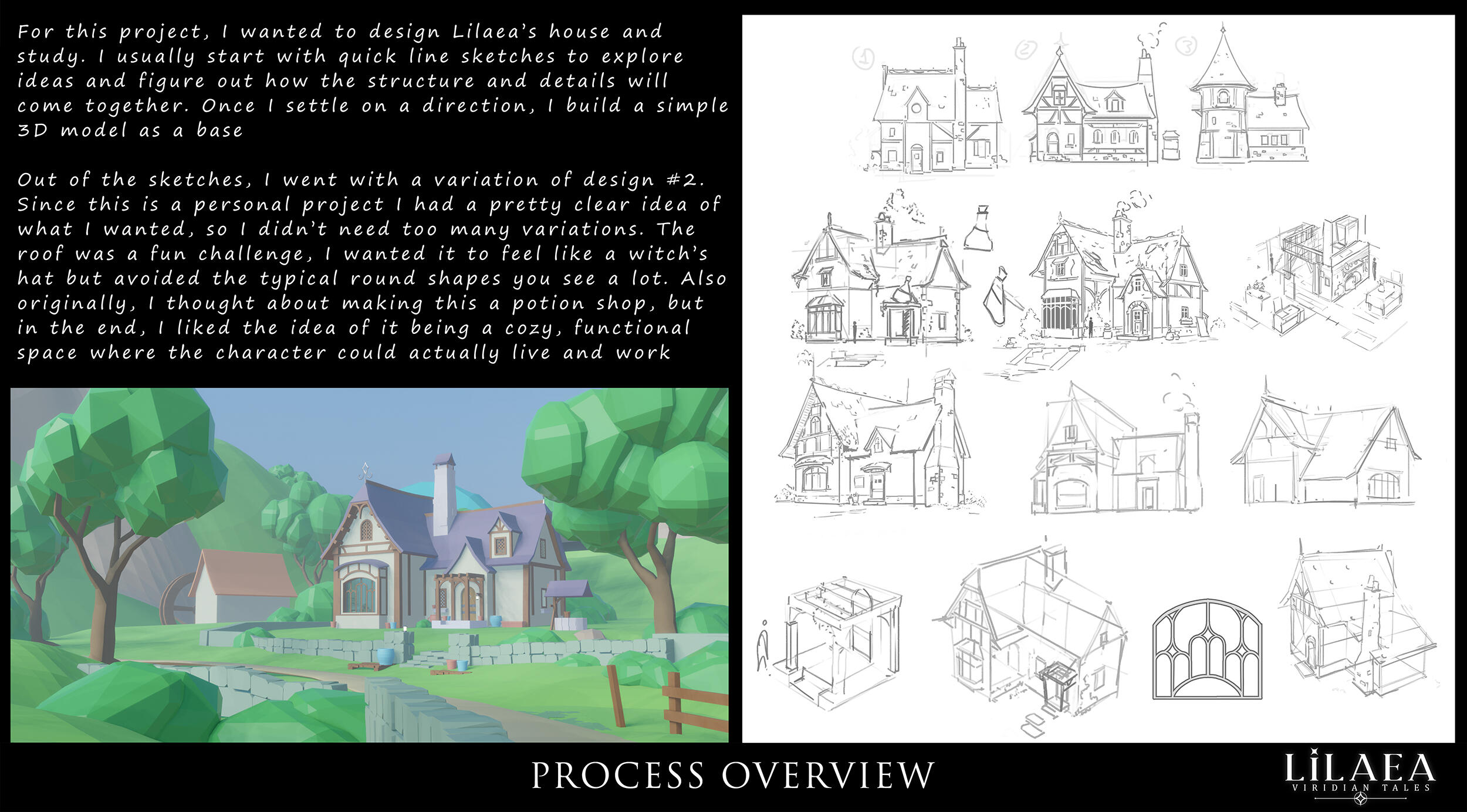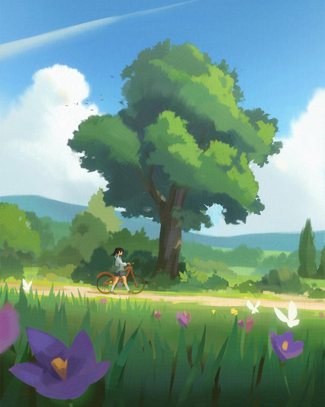 (2023-ongoing) Lilaea: Viridian Tales, this project began as an experiment in incorporating new techniques into my workflow. Along the way, it evolved into a more developed world, sparking new creative ideas. And it’s become a space for me to explore enchanted landscapes, magical places with a balance between nature and mysticism. I plan to keep exploring this world, as it’s been an inspiring and journey.